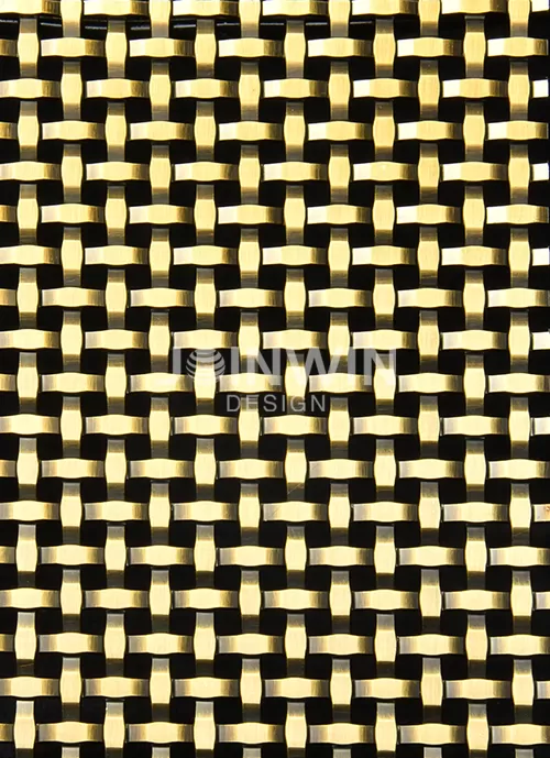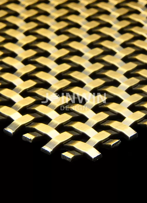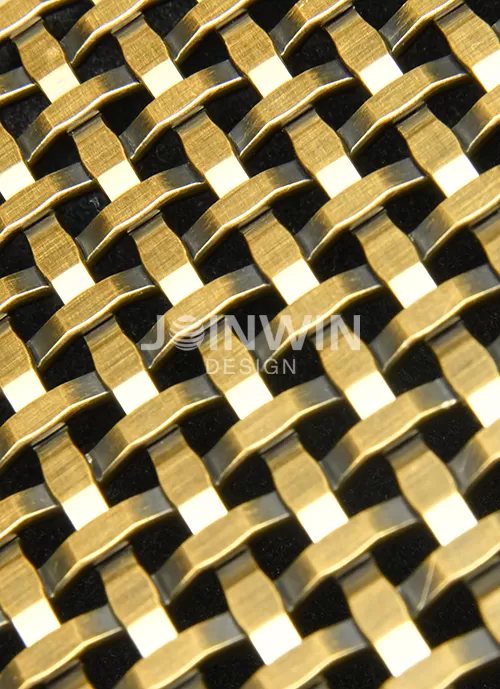 Architectural woven metal mesh can be made of stainless steel, aluminum, brass, copper and so on. Architectural braided wire mesh is made of wire of different materials. The color could be gold, copper, bronze, silvery and so on. Architectural woven metal mesh used in the elevator not only has good ventilation, but also has a strong decorative effect. A large selection of styles and colors, make the unique design and visual effect. The luster of the metal is very good, and you can feel different aesthetics from different angles. Different colors and materials reflect different design concepts.