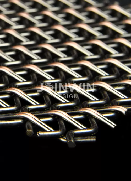 Architectural woven metal mesh can be made of stainless steel, aluminum, brass, copper and so on. Architectural braided wire mesh is made of wire of different materials. The color could be gold, copper, bronze, silvery and so on. Architectural woven metal mesh used in the elevator not only has good ventilation, but also has a strong decorative effect. A large selection of styles and colors, make the unique design and visual effect. The luster of the metal is very good, and you can feel different aesthetics from different angles. Different colors and materials reflect different design concepts.