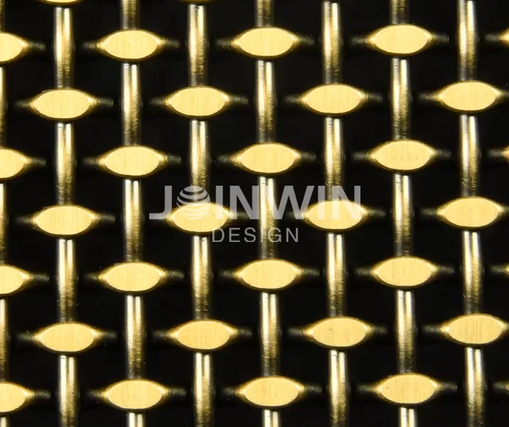 Architectural woven metal mesh can be made of stainless steel, aluminum, brass, copper and so on. Architectural braided wire mesh is made of wire of different materials. The color could be gold, copper, bronze, silvery and so on. Architectural woven metal mesh used in the elevator not only has good ventilation, but also has a strong decorative effect. A large selection of styles and colors, make the unique design and visual effect. The luster of the metal is very good, and you can feel different aesthetics from different angles. Different colors and materials reflect different design concepts.